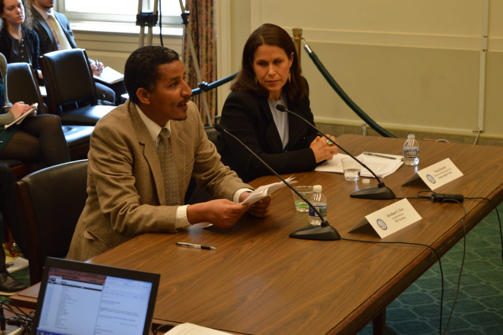 Tom Lantos Human Rights Commission of the United States Congress (TLHRC) conducted a public hearing under the title: “Eritrea: Root Causes of the Refugee Crisis” in Washington DC on April 18, 2018. PEN Eritrea’s Executive Director, Abraham T. Zere was one of the four witnesses who testified at the hearing.